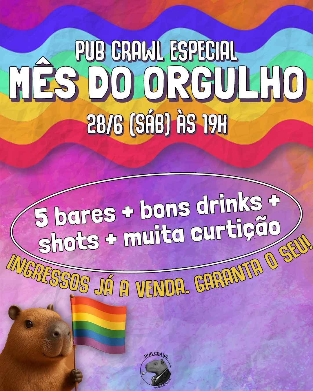 VAMOS celebrar a existência da nossa comunidade com muito AMOR, RESPEITO e ALEGRIA! Preparamos uma noite inesquecível para se juntar, comemorar, fazer novos amizades e quem sabe, até encontrar um novo amor! Vamos passar por 4 bares com drinks e cervejas artesanais, e pra fechar com muito estilo, terminamos em uma baladinha!